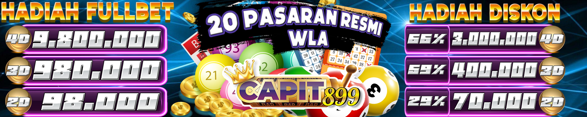 Selamat Datand di CAPIT899 Minimal Deposit Rp 20.000 Dan Minimal Bet Togel Hanya 100 Perak,- | Bonus Deposit New Member 20% | Bonus Deposit Harian 5% | Bonus Rollingan Slot 0.7%
